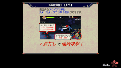 チュートリアルのバトルは一通りバトルの解説する内容となっています。基本は ・スワイプで移動 ・右下のアクションで攻撃・防御や必殺技を使う ・左の「士々札」と呼ばれるお助け機能を使う という構成となっています。攻撃は連続で行える形で、瞬発力が要求される印象です。必殺技がつながっていくと楽しい! 漫画でおなじみの「龍翔閃」や「龍槌閃」も登場しますよぉぉ!!!