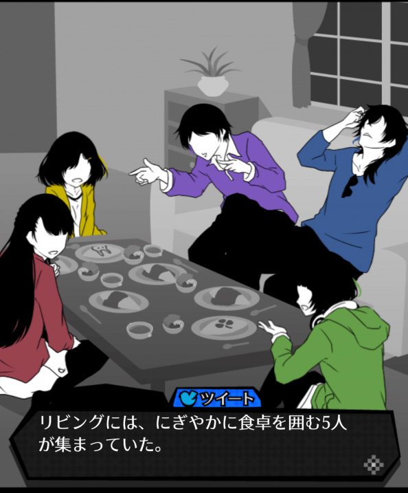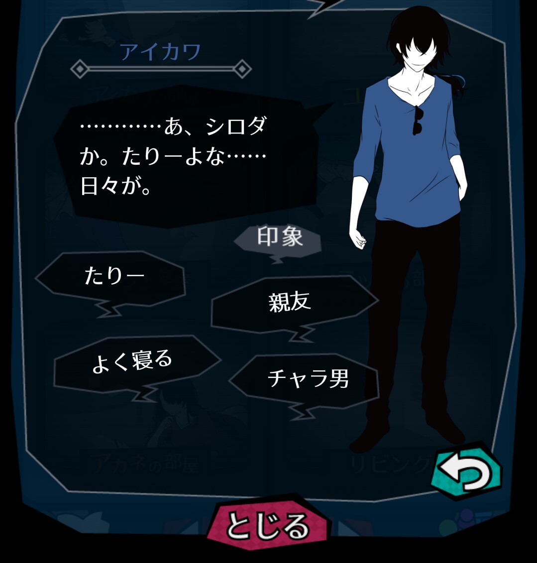 「監視」で情報や証拠を集めていくうちに、シロダを殺そうとしているのは誰なのか。その犯人像が浮かび上がってきます。 悲しいことに、犯人候補はシロダと同じルームメイト5人のうちの誰かです。 今まで集めた「情報」や「証拠」を元に、犯人を指名しましょう!