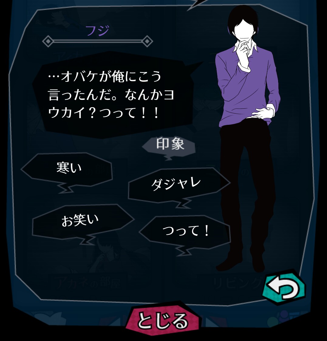 「監視」していた部屋で、「調べに向かう」を選択すると、「監視」していた部屋を訪れることができます。 住人がいた場合は、住人から話を聞くことができます。 部屋にいる住人をタップして、話しかけてみましょう。