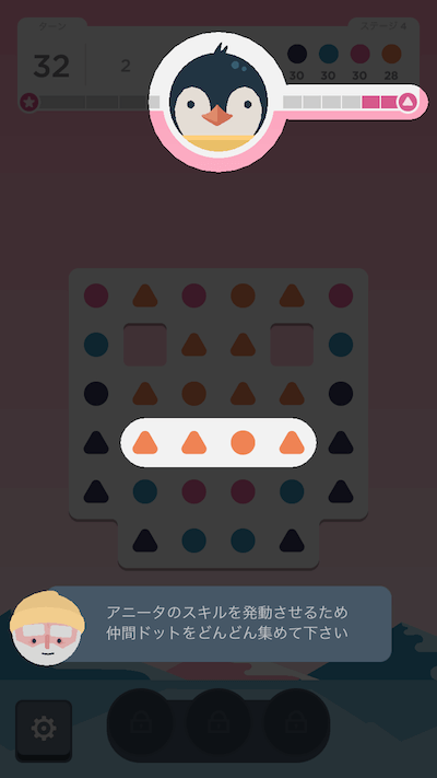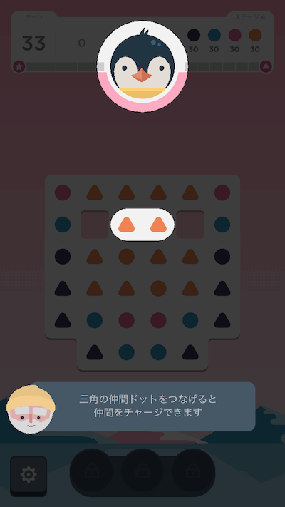 ドッツにはゲームを助けてくれる仲間がたくさんいます!仲間の能力を使うには三角の仲間ドットをつなげましょう。必要個数三角のドットを集めると仲間が特殊能力を使って助けてくれます。