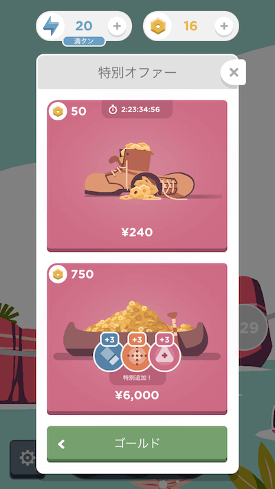 更に特別オファーがあり、こちらはオトクなセール品が出ています。通常購入するよりもお得になります。課金している方はぜひチェックしておきましょう。