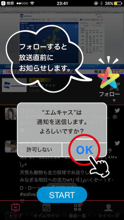 番組にはアプリでフォローができます。