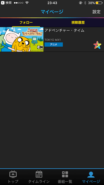 マイページではフォローしている番組の一覧と視聴履歴を見ることができます。