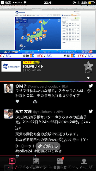 またチャンネルを切り替えることで別のチャンネルのタイムラインを見ることができますので、同様に気になる番組はフォローしましょう!