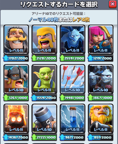 寄付のリクエストはもちろんですが、クランメンバーの寄付に応じましょう!ただし自分が今集めているカード、集めようとしているカードがリクエストされた際には見送る・・という事を意識すればさほど寄付をすることは悪いものではありません。