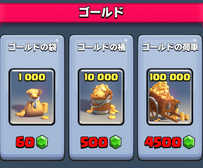 基本ゴールドは通常宝箱や寄付でためたいところですが、どうしてもレベルをあげたいカードがあるなど非常事態に利用しましょう。