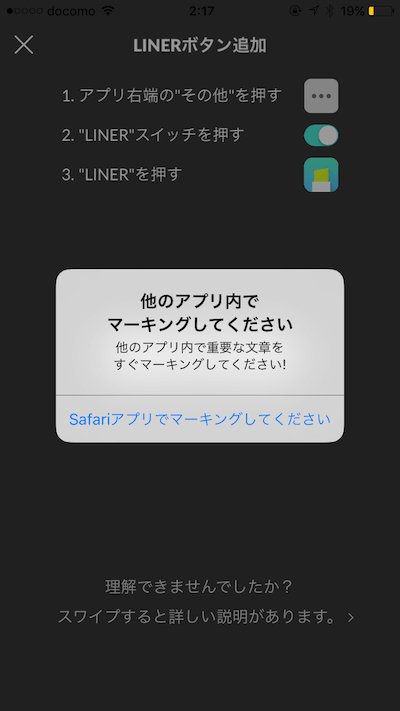 他のアプリ上でもLINERのアプリを使ってマーキングすることができます。今回はiPhoneでやってみたいと思います。