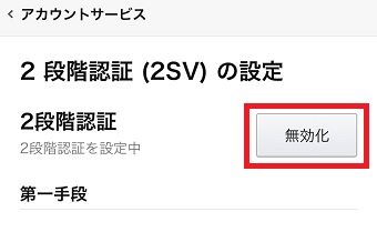 『2段階認証の設定』の『無効化』をタップします。