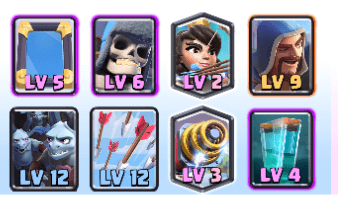 実際にレジェンドリーグで使われているデッキです! まずレジェンドリーグのクラロワTVを眺めていて、巨大スケルトンはあまり登場しませんでしたw やはりコスト6で死亡時ダメージ以外のステータスが物足りないのか人気がいまいちでした。 その中でもこのデッキは巨大スケルトンと相性のいい「クローン」と組み合わせたデッキとなっています。
