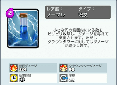 コスト2ながら、レベル差によってはゴブリンたちを瞬殺してくれます。ただしゴブリンバレルの着陸位置を間違うと事故になるのでしっかりと着陸位置を見極めて使いましょう。