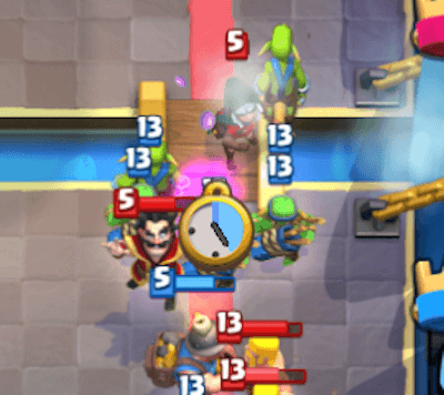 単体攻撃で対地上にしか攻撃できないので、防御面での活躍はあまりなさそうです。対地上への火力についてもミニペッカの半分程度の火力なので、ジャイアントなどHPの高いユニットを削り倒すのも時間がかかりそうです。 上手くダッシュダメージ2倍を使ってダメージを与えるようにしましょう。ただしコストが3とミニペッカなどに比べても比較的コストが少ないので、すぐに出してダメージを与えたい場合はよさそうです。 またHPについてもナイトとくらべても低いので、盾としては物足りない印象です。