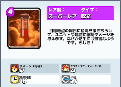 ポイズンの呪文もライトニングと同じ理由ですが、デッキの選択肢を増やすためにも優先的にレベルをあげましょう。ポイズンは速度減少効果がなくなってから使うユーザーが減りましたが最近ではバランス調整で強化されていますし、人気に再び火がつきつつあります。 ポイズンを使ったおすすめデッキ