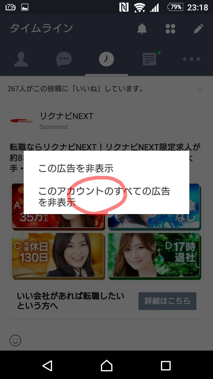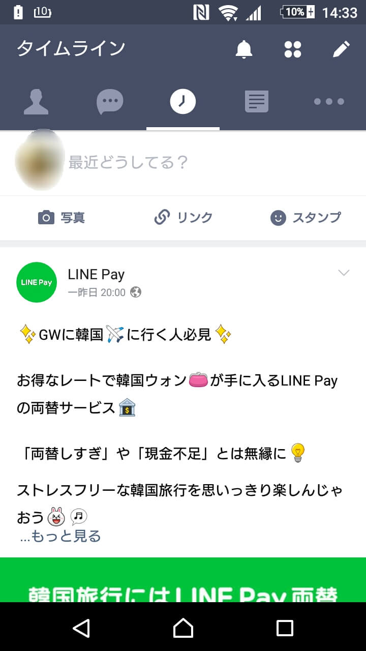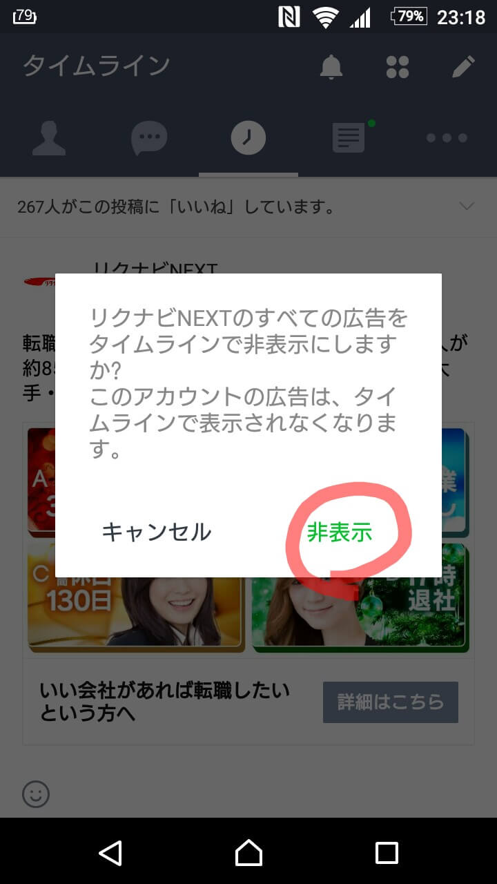 LINEのタイムラインに出てくる広告を非表示にしよう!