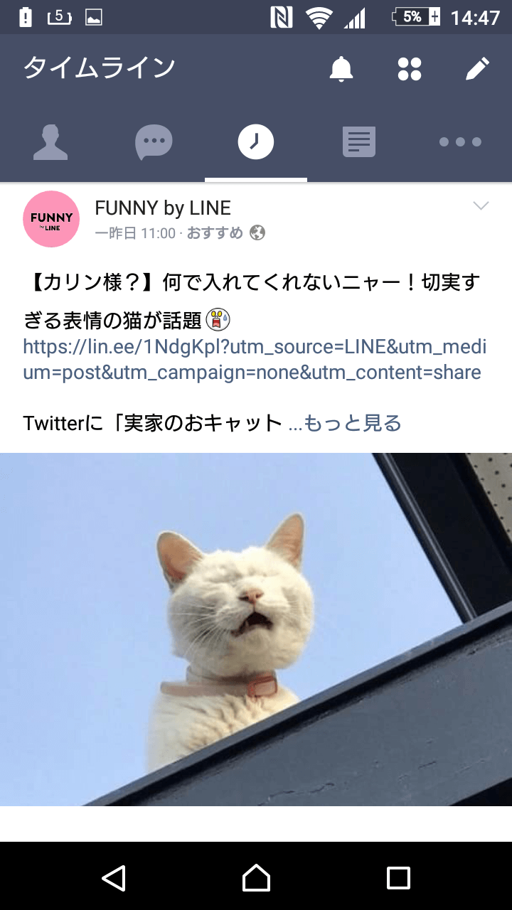 これがLINEのタイムライン画面