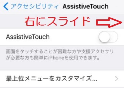「Assistive Touch」のスライドボタンをオン(黄緑色)にします。