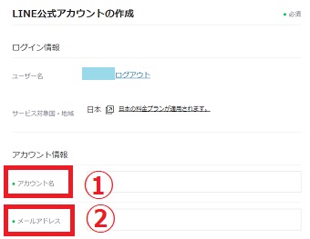 『LINE公式アカウントの作成』が開いたら