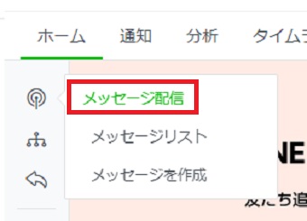 右上のアンテナのマークをクリックして『メッセージ配信』をクリックします。