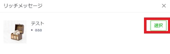 すると先程作成したリッチメッセージが表示されるので『選択』をクリックします。