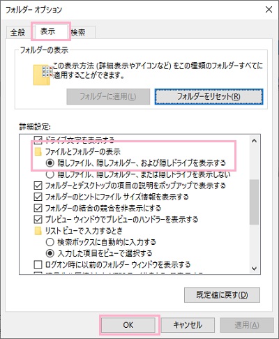 それでは、Thunderbirdで消えたメールの復元方法を說明します。今回說明する方法でメールの復元を行うにはエクスプローラーからThunderbirdのフォルダにアクセスする必要があるのですが、該当フォルダに移動するまでに隠しフォルダがあるのでまずは隠しフォルダを表示するように設定を行います。