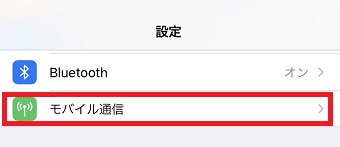 『モバイル通信』が開いたら『モバイル通信』をタップしてオフにしてください。その後もう1度タップをし、オンにしてください。