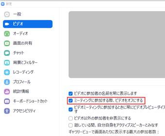 やり方はカンタンで、設定を開いて[ビデオ]に切り替え、その後[ミーティングに参加する際、ビデオをオフにする]をオンにするだけです。