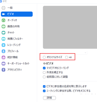 ちなみに、この設定はZoomミーティング中は非表示になっています。ビデオの画質の設定を変更したい場合は、一度Zoomミーティングを抜けて(完全に終了させる必要はありません)設定を変更し、ミーティングに入り直すようにしましょう。