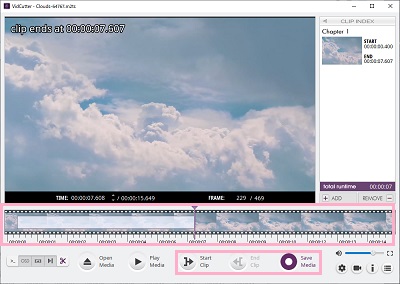 ファイルの保存ダイアログボックスで保存先フォルダーを選択して名前を付けましょう。あとは編集画面に戻り、切り出さなかった部分を始点&終点設定して「Save Media」で保存すれば分割完了です。これで、M2TSファイルを分割して保存することができますよ。