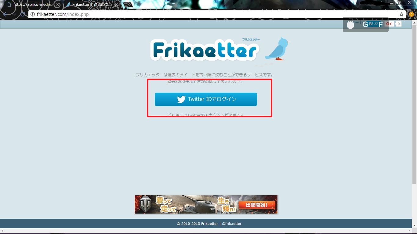 この「Frikaetter」を利用すると、見たいユーザーのツイートを古い順に並び替えてくれます。 昔投稿した古いツイートを見たい!!けど期間がわからないから検索もできないし、ツイート数も多いからそこまで昔まで遡るのもなかなか大変...。。 そんな時に一番役に立つのがこの方法です。