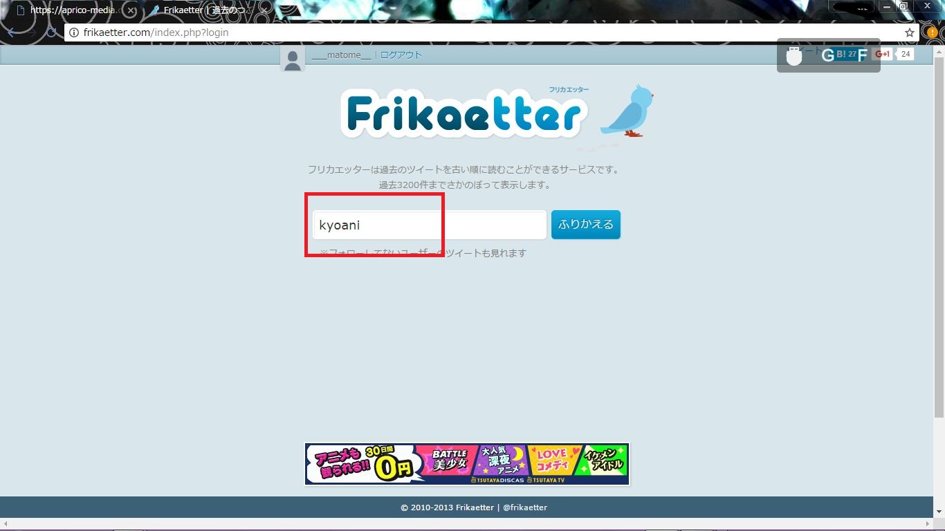 「Frikaetter」を使用して過去のツイートを検索する