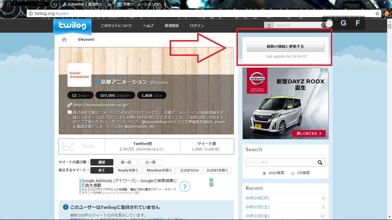 ② 最新ツイート200件が表示されます!! とても手軽ですね ツイートを最新のものに更新したい時は右上にある 「最新の情報に更新する」をクリックしましょう。