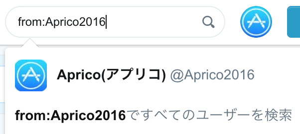 ユーザー名の指定の仕方は「from」を使います。[from:〇〇]と入力します。