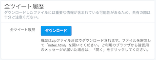 このページの「ダウンロード」ボタンをクリックして、全ツイート履歴をzipでダウンロードしましょう!