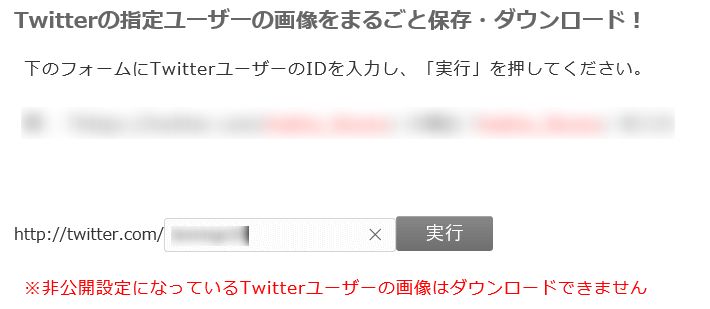 まずは「Twitterの指定ユーザーの画像をまるごと保存・ダウンロード」にアクセスし、まとめて保存したいユーザーIDを入力フォームに入力して下さい。