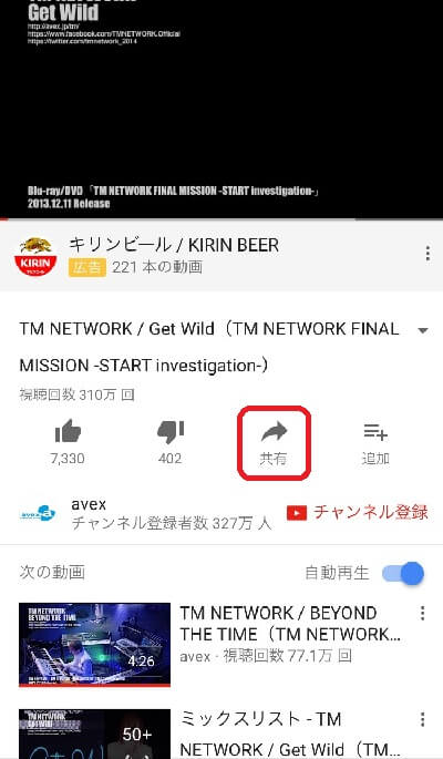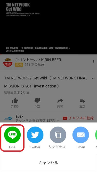 動画の共有は単にリンクを送る役割だけでなく、仲の良い友人や、知り合ったばかりの方同士でも自分の好きな動画を紹介したりすることによって会話が盛り上がるのでとてもオススメです。 動画のページから直接LINEに共有させる方法ですが、ブラウザからはまだLINEに共有できないようです。 今後追加されることを期待しましょう。