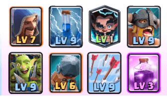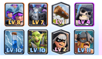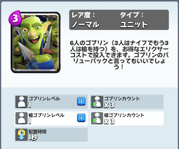 「ゴブリンギャング」「ゴブリンバレル」「スケルトン部隊」と複数ユニットからなるカードが目白押しのデッキです。敵の持っている範囲攻撃カードの数によりますが、単体メインのデッキだとこのデッキはハマりやすいです。