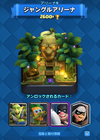 アリーナ9ではトロフィー帯もかなり高くなってきていて、レジェンドアリーナクラスのプレイヤーもぞろぞろいます。そんな強豪揃いのアリーナ9の対策をしっかりたてて攻略していきましょう! またアリーナ9で手に入るカードはいずれも曲者のカード揃いです!