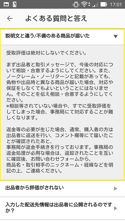 ・トラブルが発生したらまずは出品者/購入者の間で確認する。