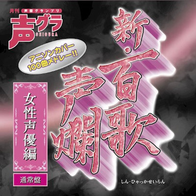 新・百歌声爛ー女性声優編ー 100曲ものメドレーを10名女性声優人が艶やかに各曲を歌い上げております。これは聴きたい人が多いと思います。