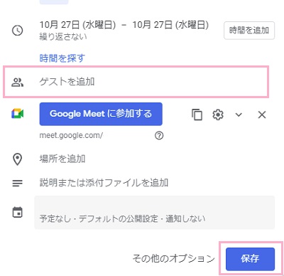 Web会議を行う予定を事前に決めてある場合は、Googleカレンダーにミーティングの予約を入れて他の参加者を招待することができます。