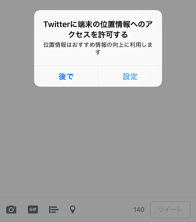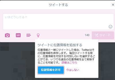「位置情報の許可」を選択すると、ツイートに位置情報が共有されます。