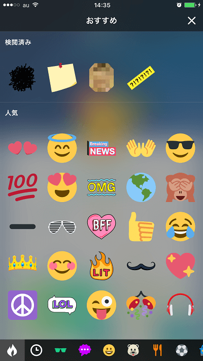 すると、このようにステッカーが表示されますので、対象の画像に使いたいものを選択しましょう。