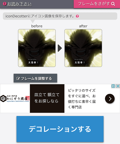 フレームの調整などを行い、アイコン画像のデコを完成させます!