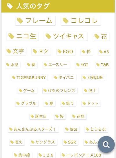 フレームの種類はたくさんありますので、「検索語を入力」で探しても良いですし、下のタグを選択しても良いです。今回は、「人気のタグ」を選択します。