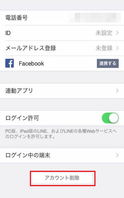 LINEアカウントの削除方法
