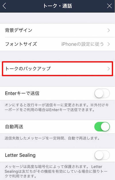 トーク履歴のバックアップ方法
