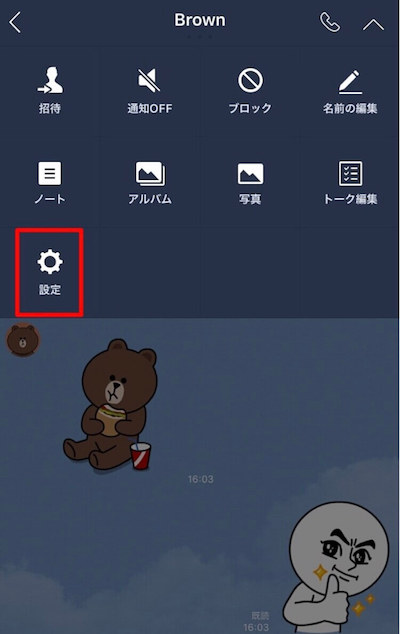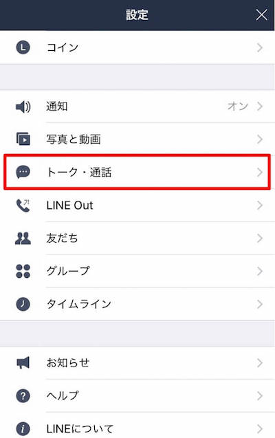 1)[その他]([…]アイコン)>[設定](歯車アイコン)>[トーク⋅通話]をタップ