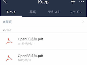するとKEEP内にタグが表示され、タップすると、先ほど選択したファイルたちが整理されています。