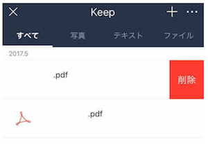 また、対象ファイルを左にスライドすることでファイルを削除することができます。