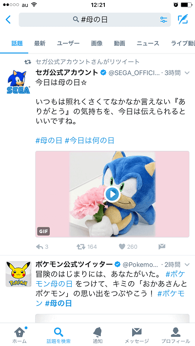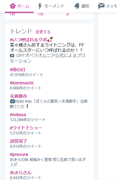 優先順位としては、フォローしているものが上に表示されやすいです。今日は母の日がトレンド一位と言うの事で、タイムラインを見てみると平和な気分になります。