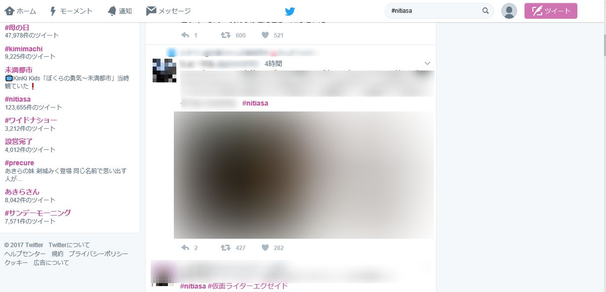 トレンド入りしたワードが使われているツイートが表示されますが、関心の高いものが最初に表示されるようになっています。